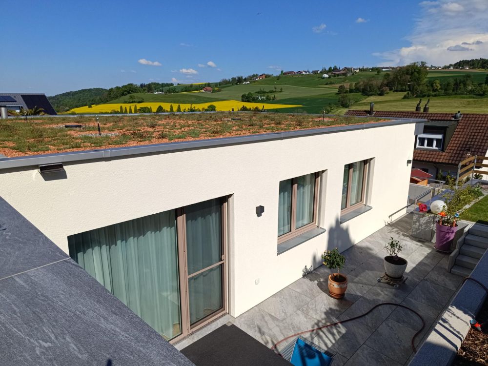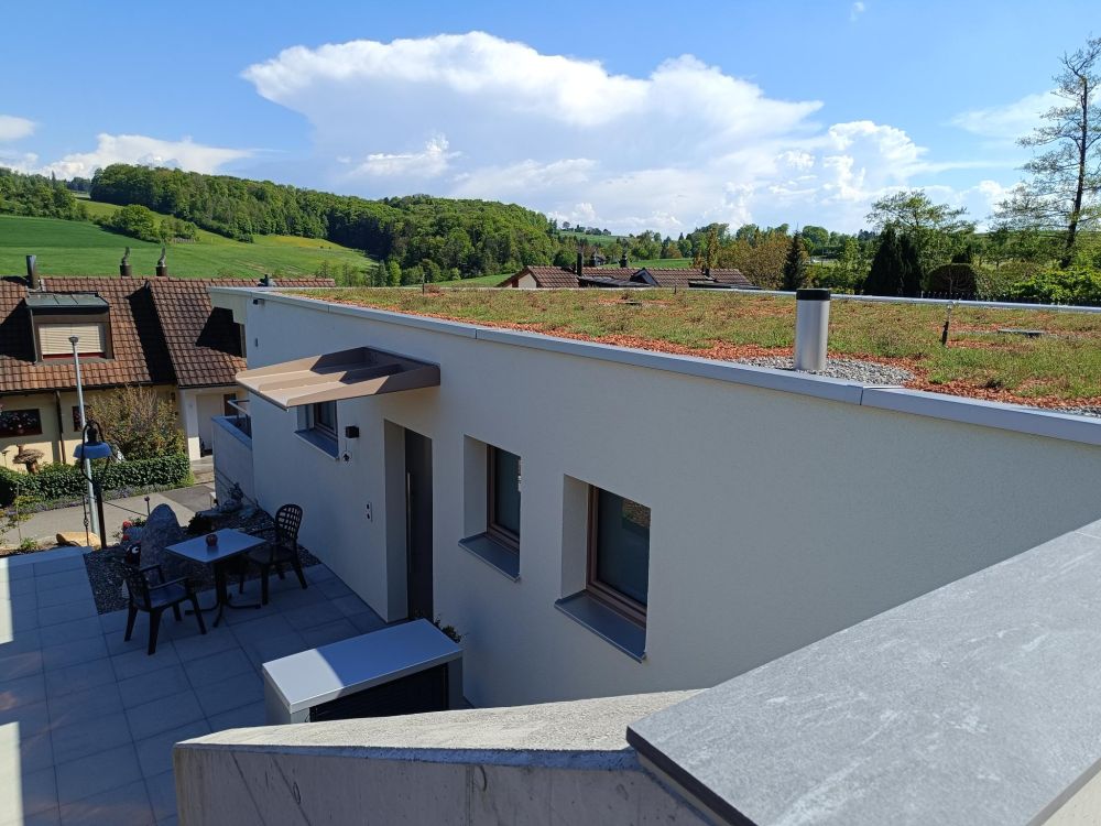 Grundstücksfläche von einem bestehenden Wohnhaus wurde ab parzelliert um Platz für einen harmonischen Neubau zu schaffen. Es entstand ein kleines Einfamilienhaus mit wunderschöner Aussicht ins Grüne und umfasst zwei Schlafzimmer, Wohn- und Essbereich, Nasszelle, Gäste-WC, Technikraum mit separater Luft-Wasser-Wärmepumpe und einem Kellerraum.